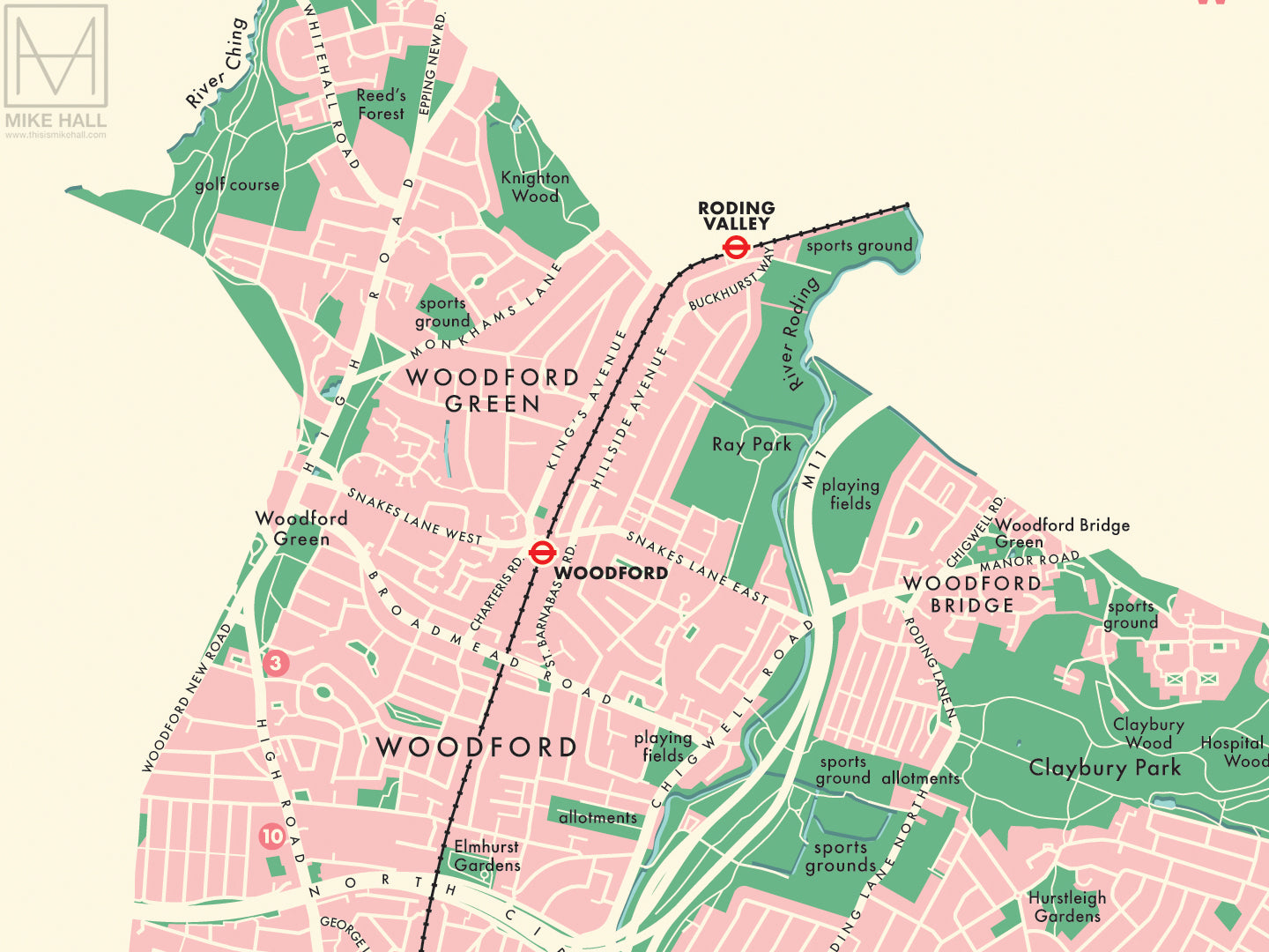 Redbridge (London borough) retro map giclee print โ Mike Hall Maps
